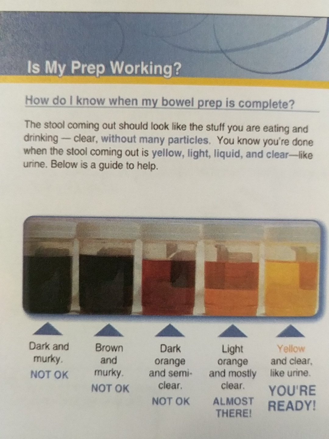 Passing mostly clear or only a light color including yellow is a sign your colon is clean enough for an accurate examination.